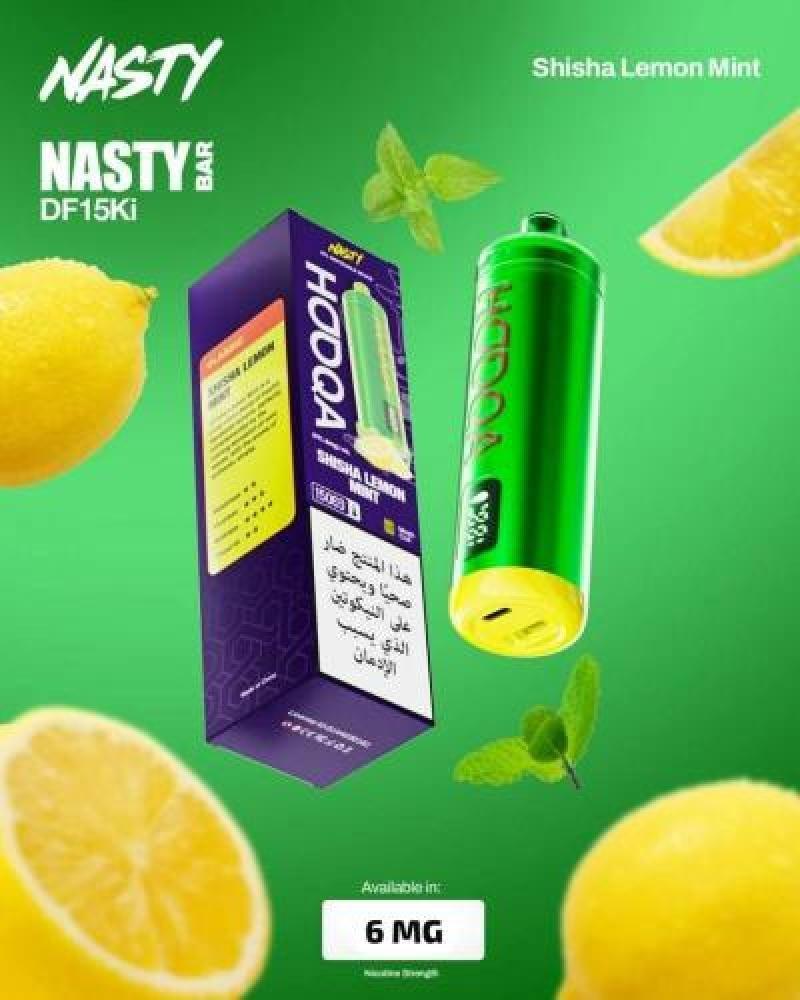 شيشة ناستي هوكا 15000 سحبة - نكهة ليمون نعناع NASTY HOOQA DTL 15K Puff SHISHA LEMON MINT