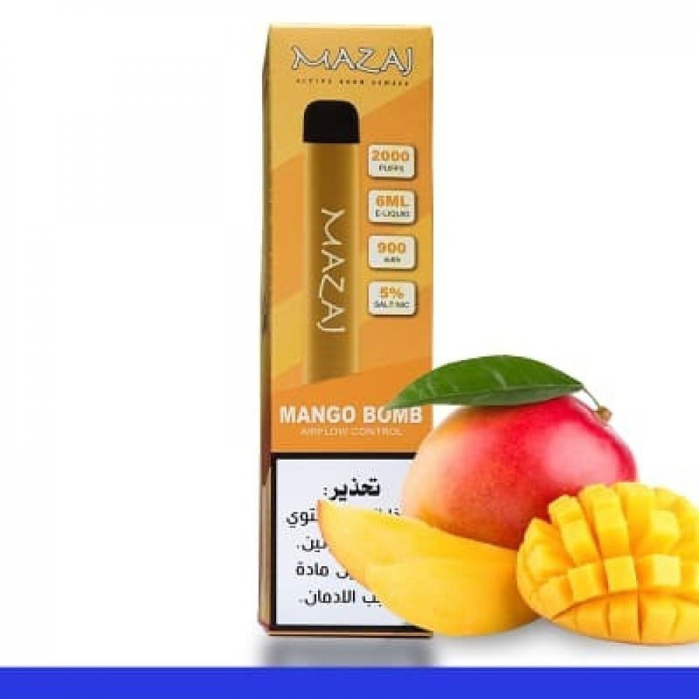 جهاز جاهز للستخدام مره واحدة بنكهة مانجو من شركة مزاج 2000 سحبةنسبة النيكوتين/ 50 MGعددالموشات / 2000 puffs