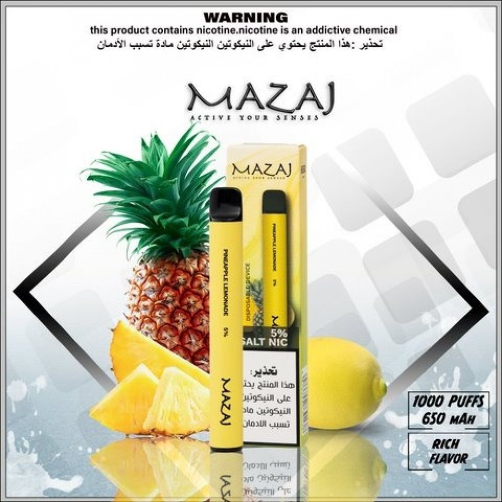 سحبة جاهزة مزاج اناناس وليمون 1000 موشة Mazaj pineapple lemonade 1000 Puff disposable