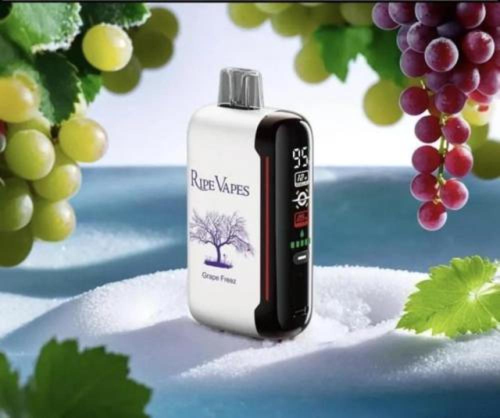 نقدم لكم سحبة جاهزة من رايب فيب 20 الف موشة Ripe Vapes 20K Puff Disposable تعطيك حتى 20000 موشة و تاتي مع بطارية كبيرة و تعطيك حتى 25 واط بالاضافة لشاشةعرض رائعة و نظام تحكم بالاير فلو